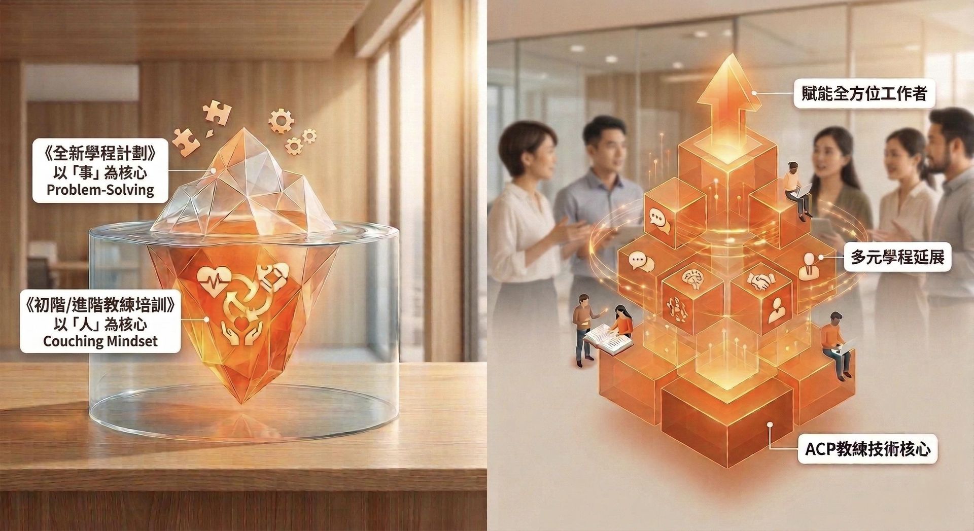 AndAction《初階/進階教練培訓》旨在「以人為核心」培養具系統性影響力的個人身份或定位,強調在「一對一」或「一對多」的影響,學習歷程與投入成本較長(約 2 - 4 個月)。